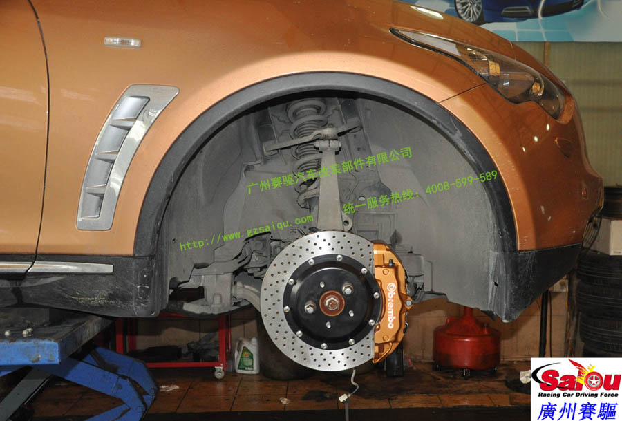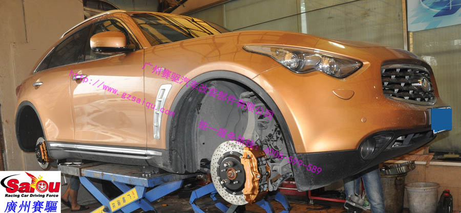 土豪殺到!土豪金英菲尼迪FX35升級土豪金定制版brembo前六后四剎車套裝
