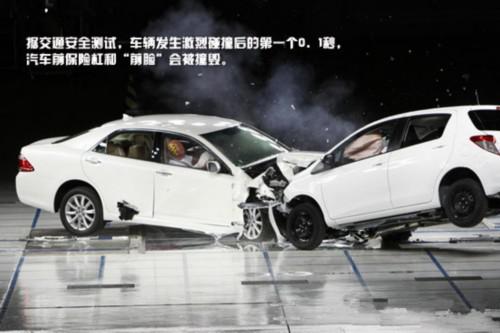 據(jù)交通安全測(cè)試,車輛發(fā)生激烈碰撞后的第一個(gè)0.1秒,汽車前保險(xiǎn)杠和“前臉”會(huì)被撞毀。
