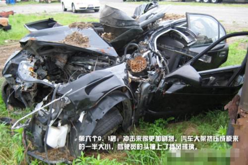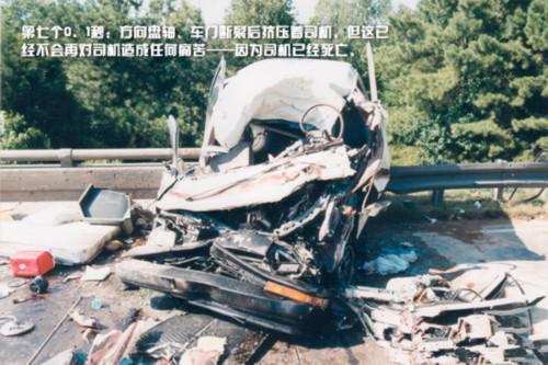 方向盤軸、車門斷裂后擠壓著司機(jī),但這已經(jīng)不會(huì)再對(duì)司機(jī)造成任何痛苦——因?yàn)樗緳C(jī)已經(jīng)死亡。