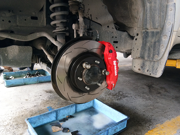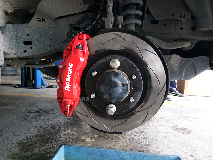 面對這么大型猛獸,我們給他配置AP9040剎車,六活塞卡鉗搭配DBA T2紋剎車碟,和原車碟大小一樣,原車位安裝,直接上圖看