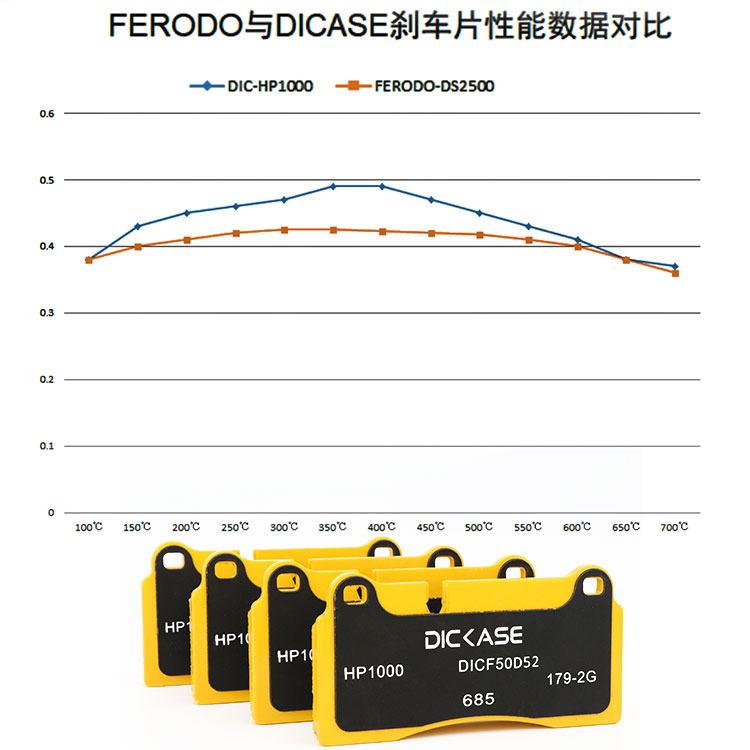 DICASE剎車片采用陶瓷復合材料,耐高溫性極好。例如DICASE的HP4000剎車片最高可使用溫度高達1100℃。