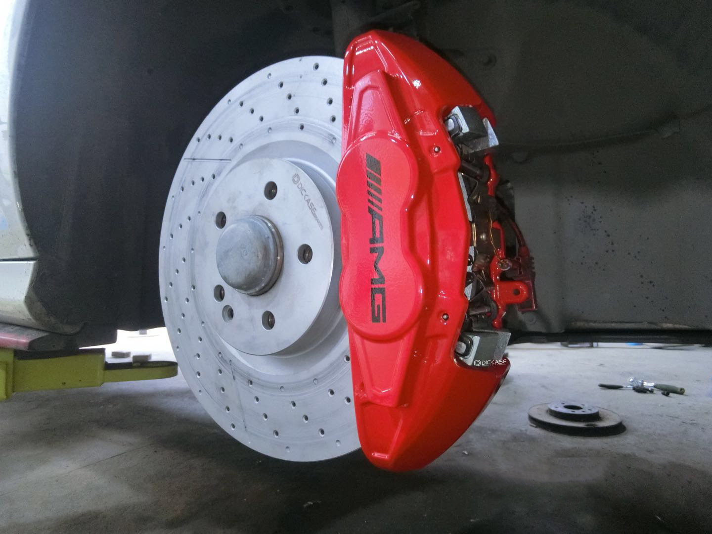 AMG卡鉗的改裝的標(biāo)志象征著性能的升級(jí),小小的改動(dòng),大大的提升,AMG奔馳的尊享身份不滿足于此,或是為了完整度,車主又打算在這輛車的基礎(chǔ)上直裝330mm的加大盤打孔加劃線的剎車盤。