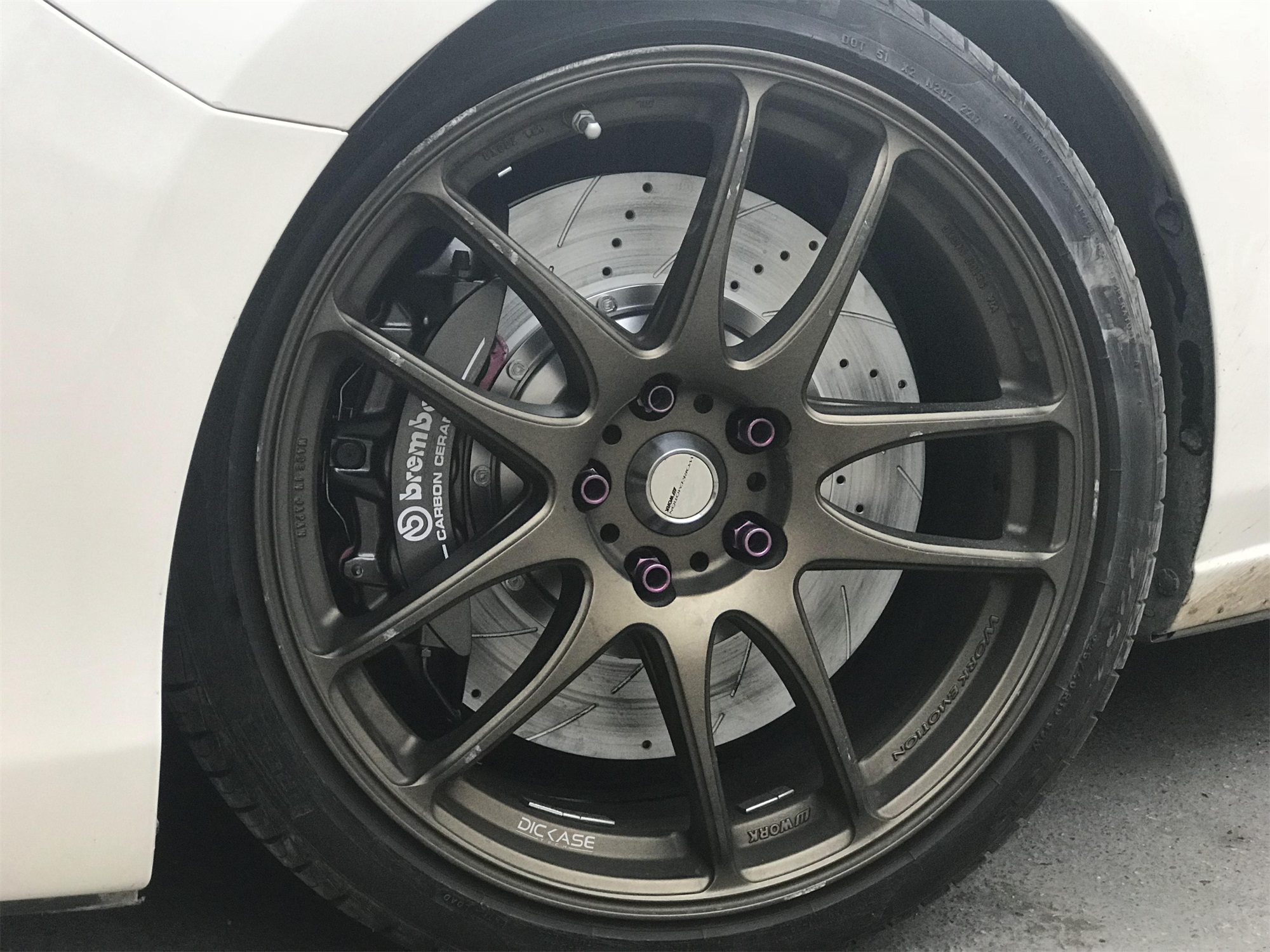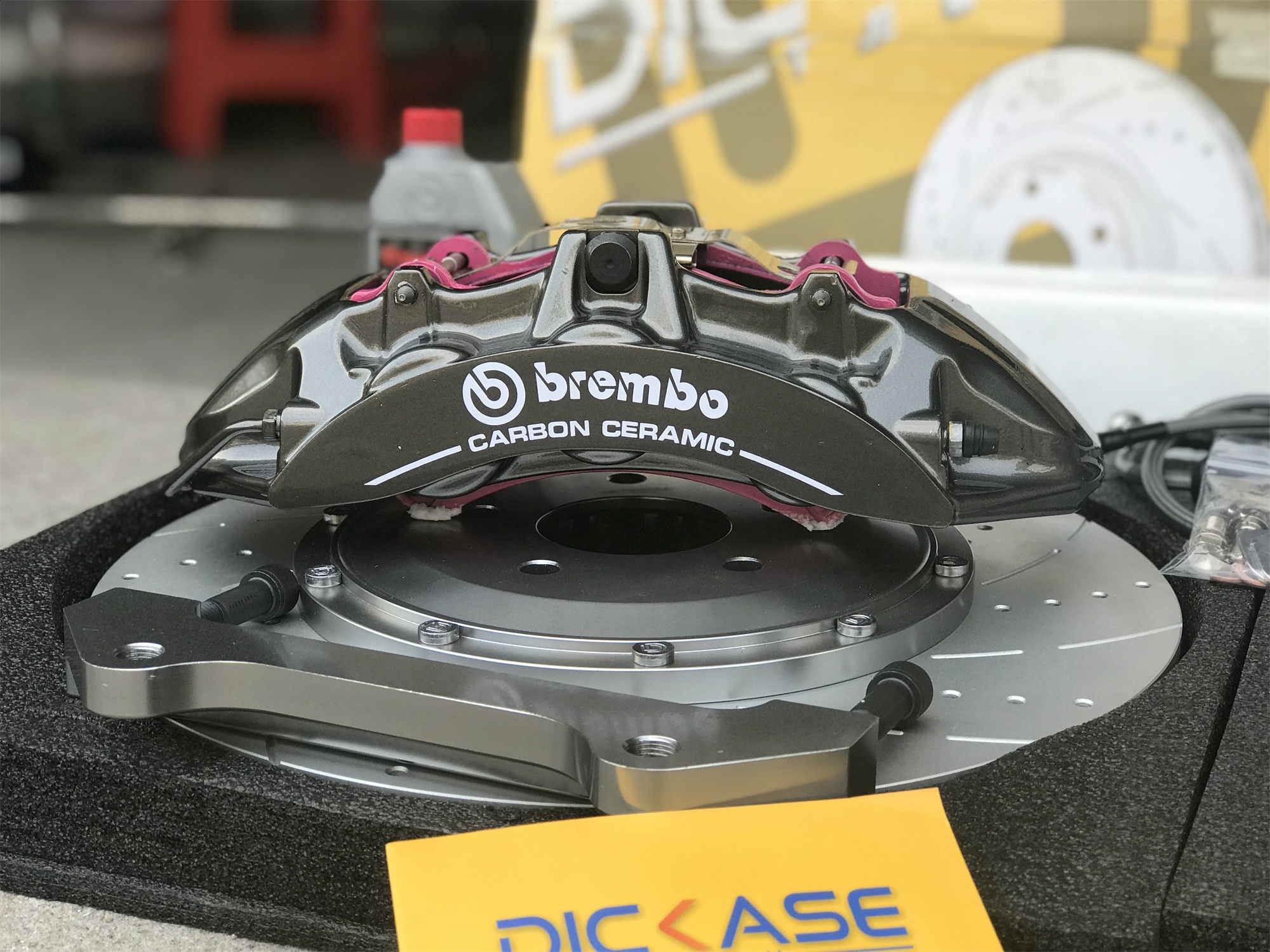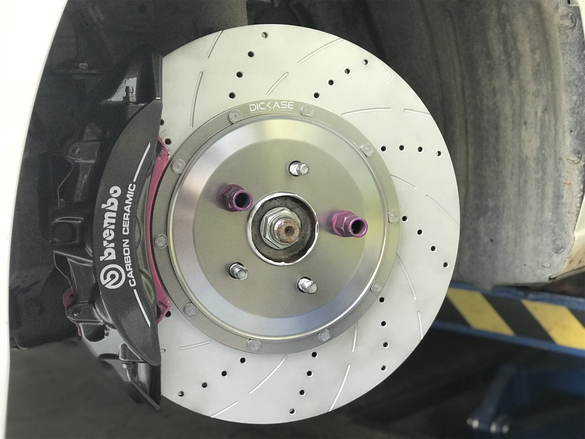 馬自達阿特茲改裝升級brembo V6六活塞搭配DICASE380*34 mm孔線碟DICASE套裝。