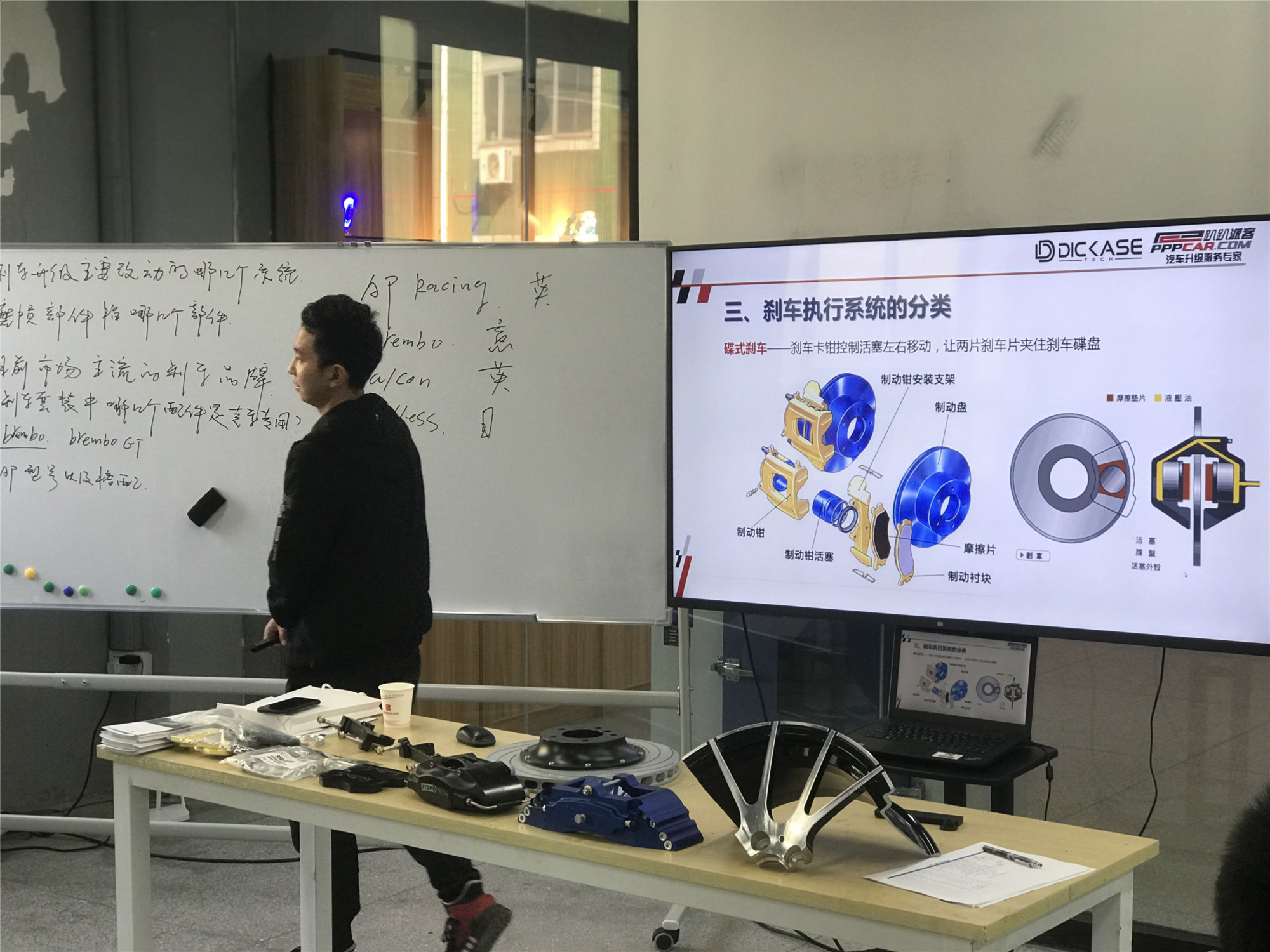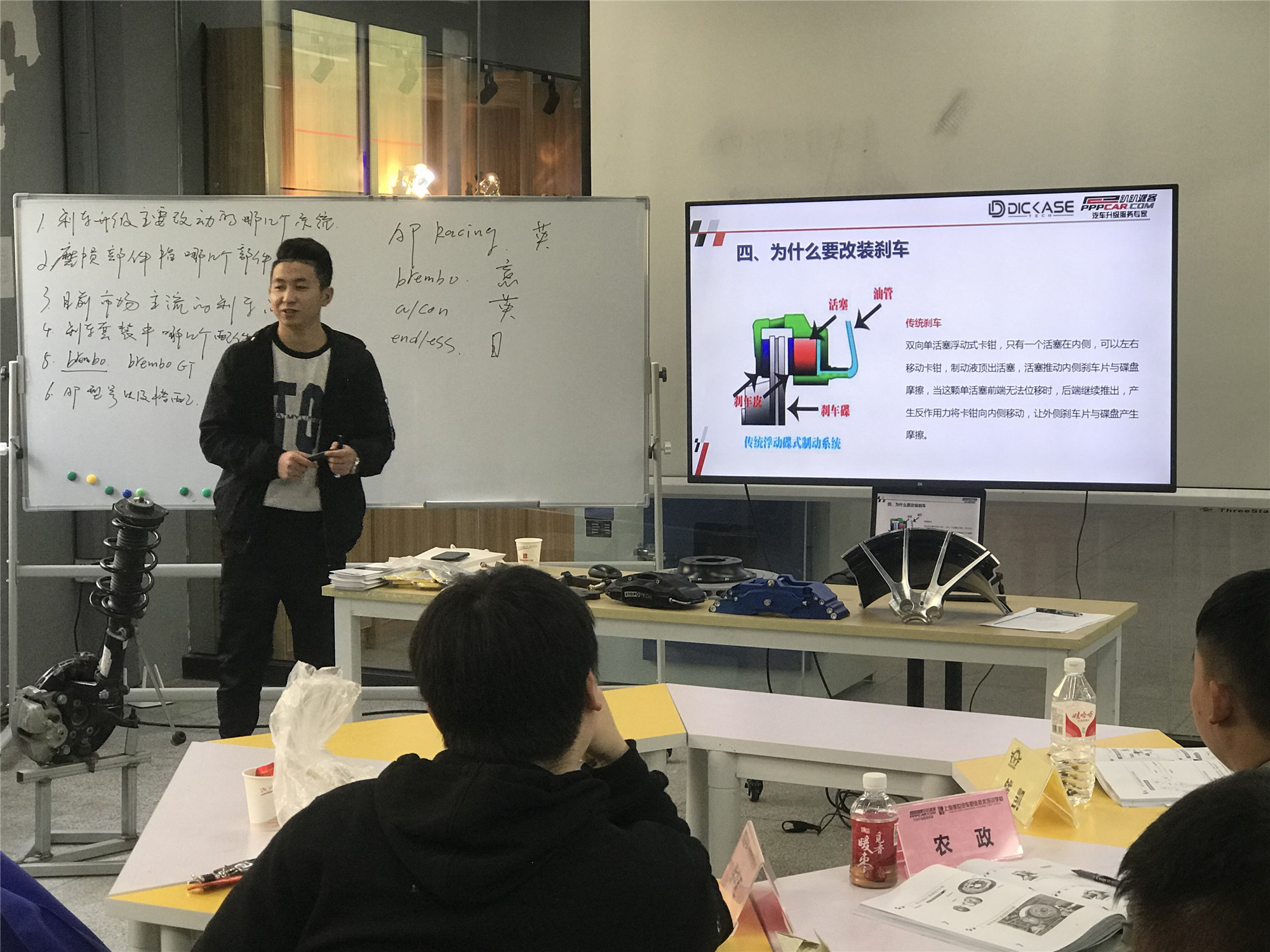 為了更好的認(rèn)識(shí)到改裝的魅力,讓實(shí)踐走進(jìn)課堂。賽驅(qū)還帶來(lái)了公司現(xiàn)在熱銷(xiāo)的改裝件:AP Racing的剎車(chē)卡鉗、DICASE的剎車(chē)碟和剎車(chē)片等。學(xué)員對(duì)陌生而有趣的剎車(chē)改裝件非常感興趣。