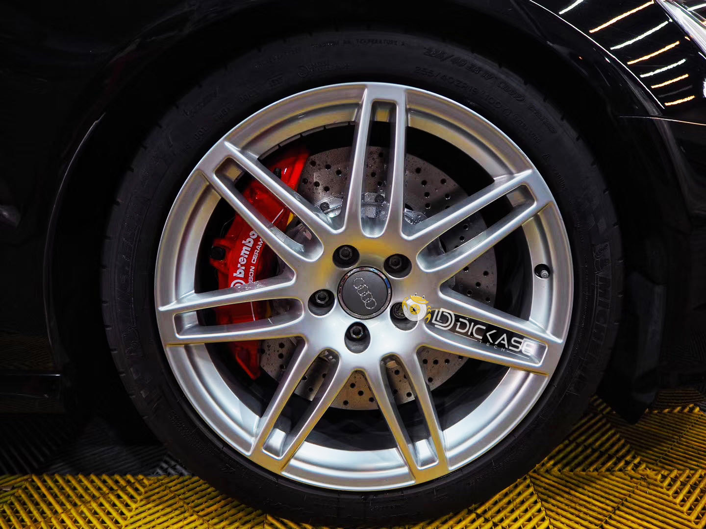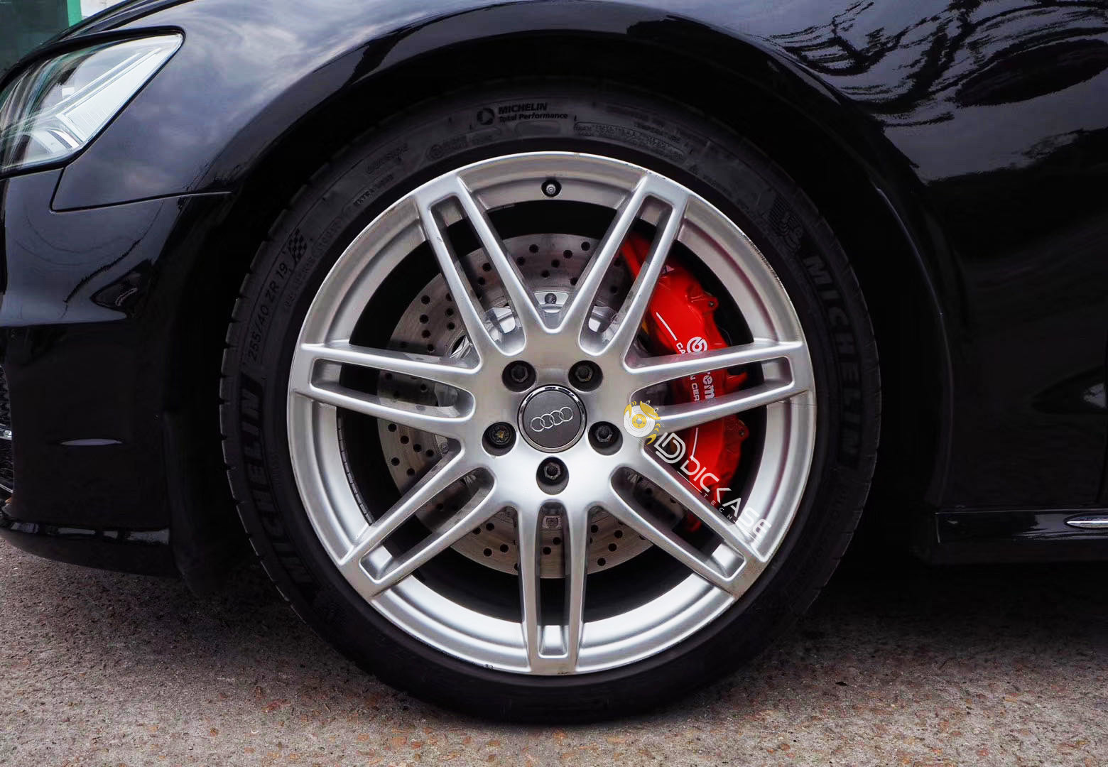 奧迪A6剎車升級前置brembo V6配380孔盤后輪升級370孔盤!