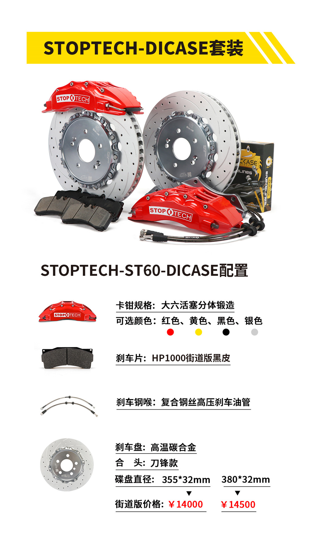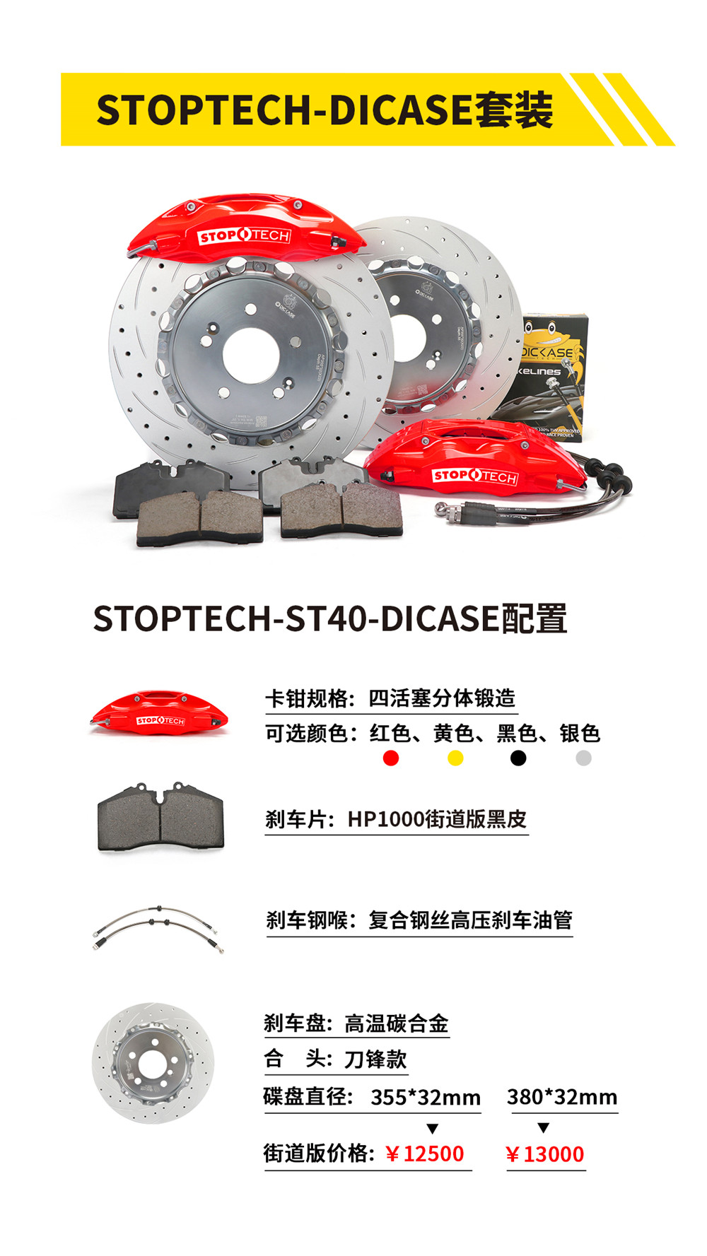 美國原裝進口STOPTECH卡鉗搭配DICASE配置 —— 質量穩定,可靠,材料、性價比高!