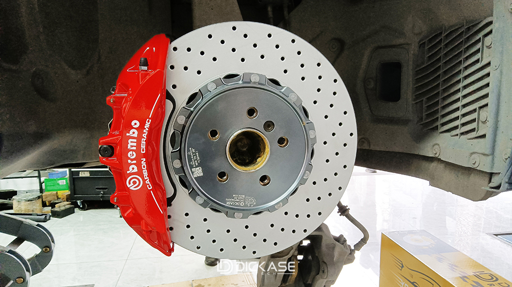這里車主選用的是Brembo v6大六活塞卡鉗搭配DICASE打孔剎車盤,hp1000街道版剎車片,這樣的配置有一個很好的優點就是輕踩線性平穩,重踩制動力十足,更偏向于家庭一些。