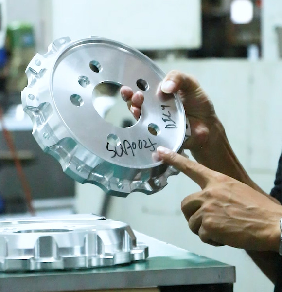 看到圖紙上的數(shù)據(jù),我們會(huì)先拿去車床加工出精準(zhǔn)的圓邊以及中心孔,這個(gè)步驟在CNC數(shù)控機(jī)床可以進(jìn)行更為精準(zhǔn)的校準(zhǔn),而且在CNC上需要地方來(lái)鎖住鋁餅經(jīng)行加工,加工好的這些地方可以提供更牢固,平面度最高的地方進(jìn)行加工,然后開始加工反面,一個(gè)合頭就是初始形狀就是這樣出來(lái)了!