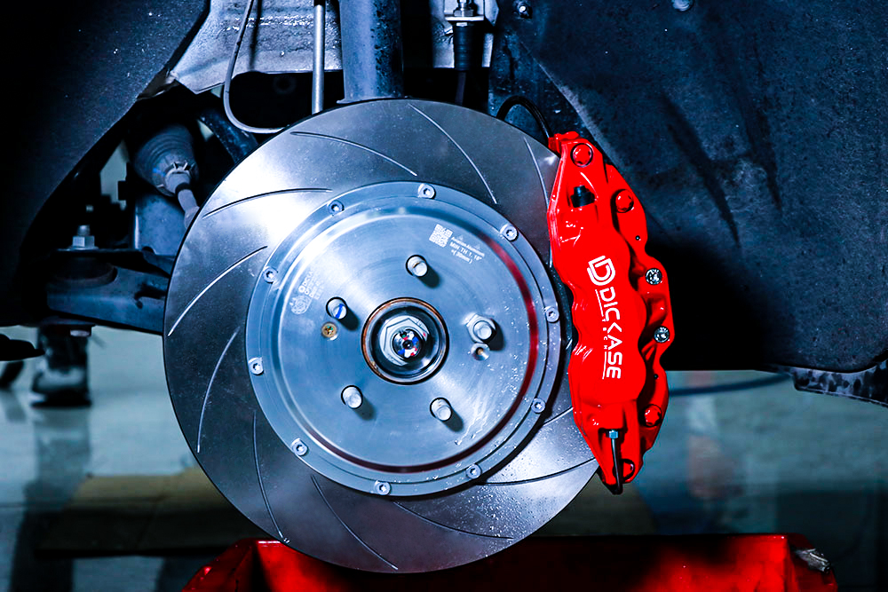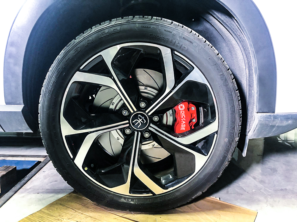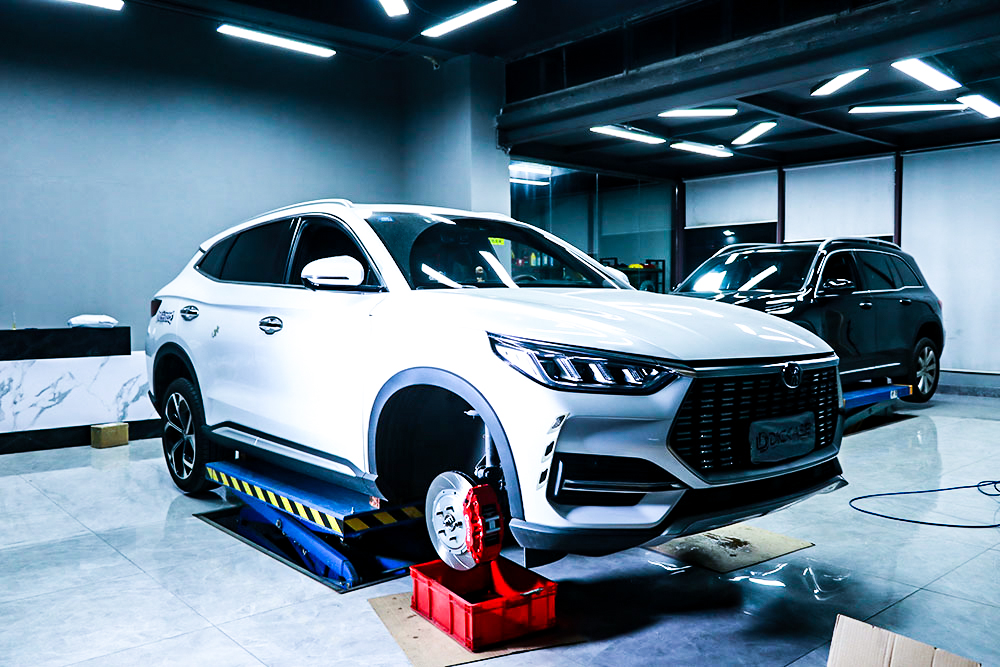 比亞迪宋plus升級迪卡司D61六活塞高性能版的卡鉗套裝,原車輪20寸,前輪升級DICASE D61分體鍛造的六活塞卡鉗,強度高,重量輕,不點頭,提升腳感舒適度