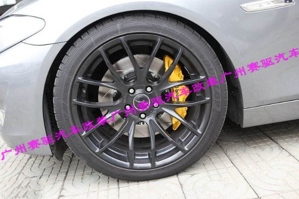 Brembo GT系列的制動套裝,其中卡鉗本體為對向6活塞一體鍛造卡鉗,全浮動散熱剎車碟盤具有方向性之導風道以達最佳之冷卻效能,并且由于特殊劃線設計有效達到增加磨擦 力,持續清潔剎車盤并確保來剎車片與剎車盤之最佳磨擦咬合面。