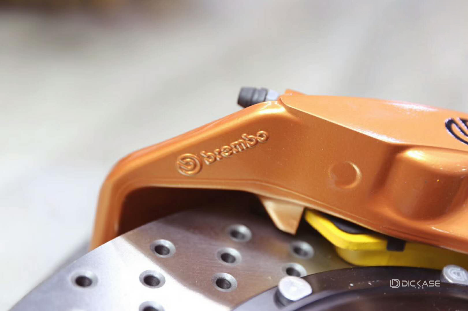 原廠的剎車早已不能滿足駕駛的需求,所以車主打算把brembo 競(jìng)技六活塞大鮑魚搭配DICASE——380mm高性能分體盤安置在前輪,在性能儲(chǔ)備都做足了戲碼讓車輛擁有超高的操控性能.