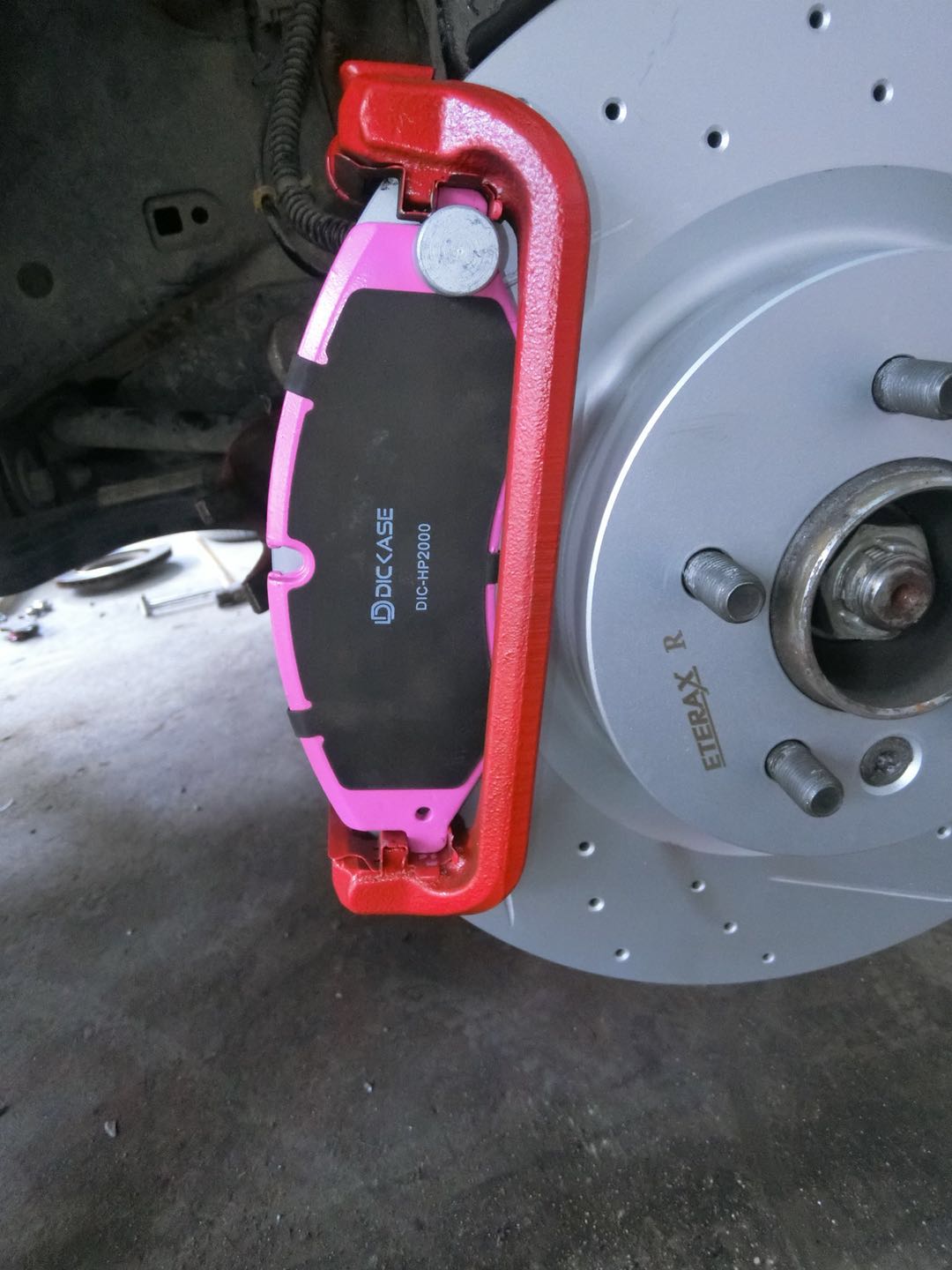 不同品牌或型號的剎車片制動效果不同。頭段制動反應變得過快或過緩并非是罕見的例子,但不同駕駛者有不同的駕駛習慣和喜好,因此這些情況未必構成嚴重的問題。在選購時先參閱剎車片包裝上的特性說明,再向改裝技師多問其特性,車主聽了我們的建議,所以改裝這套比較容易找到適合自己駕駛習慣的高性能剎車片。