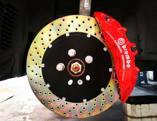 前輪改裝的是Brembo-V6活塞搭DICASE380*34mm打孔碟,制動效果,杠杠的!